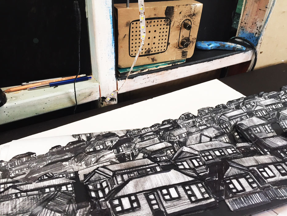 Dolanโs process involves unique single-edition monotype prints created on a traditional printmaking press, which has been customised for the artist and is currently the largest printing press in use in Aotearoa New Zealand.