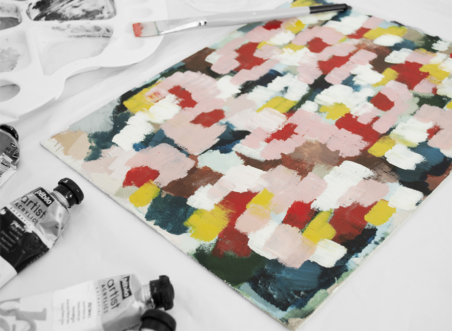 Back in Friisโs studio begins the process of developing these automatic drawings into shapes of colour. Shapes that will be layered and juxtaposed together to form a new pictorial language that is at once spontaneous and intuitive. In this journey of extracting shapes and collaging them together the act of Pareidolia takes place.